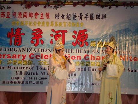中新網11月30日電 據廣東僑網消息,近日,廣東省河源市在海外的第一個社團組織——馬來西亞河源同鄉會隆重舉行創會一周年紀念活動。受廣東省僑辦、廣東省海外交流協會和河源市市長劉小華的委托,河源市外事僑務局局長郭定祥率廣東省海外交流協會紫金花朝戲劇團前往馬來西亞沙巴州祝賀,花朝戲劇團為當地華僑華人呈獻了一場精彩的演出。