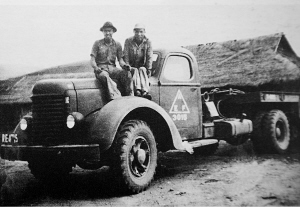 南僑機工陳壽全(左)和李敏在滇緬邊境運送抗戰物資。李幸璜攝影/翻拍