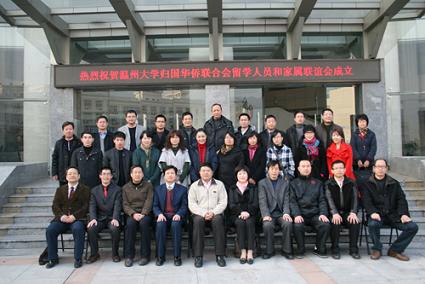 中新網1月6日電 據浙江僑聯網消息,2009年12月30日,溫州大學歸國華僑聯合會、留學人員和家屬聯誼會成立大會在南校區巖松堂白鹿廳舉行。浙江省溫州市僑聯副主席應鳳娟,兄弟院校代表、校黨委副書記周湘浙,有關部門負責人、學校各民主黨派負責人和無黨派知識分子聯誼會負責人、各學院黨總支書記出席大會。