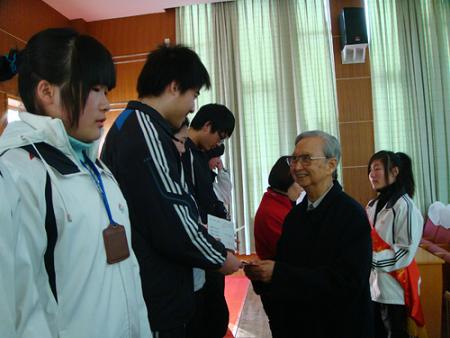 中新網2月1日電 據浙江僑聯網消息,1月26日,浙江省愛鄉楷模、寧波市榮譽市民、原香港遠東紡織有限公司董事長包景表先生一行在寧波市鎮海區僑聯主席顧燕華的陪同下專程來到鎮海區職教中心,為獲得第四屆“勵志獎學金”的50名學生頒發獎學金。