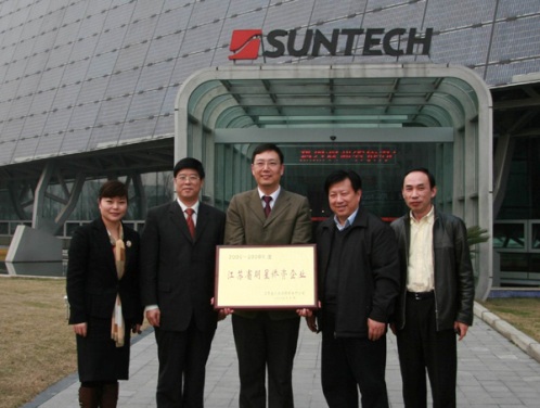 在無錫尚德太陽能電力有限公司,錢興榮一行聽取了該公司以及施正榮博士創業發展情況的介紹,并向公司頒發了國務院僑務辦公室授予的“全國百家明星僑資企業”獎牌和省僑辦授予的“江蘇省明星僑資企業”獎牌。