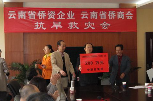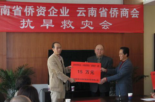 云南省僑資企業界和云南省僑商會會員企業深感企業扎根于云南,服務于各界,得益于百姓,自當奉獻于社會。經商議,云南省部分僑資企業和云南省僑商會部分會員企業于2010年2月22日在云南省僑辦舉行了云南省僑資企業、云南省僑商會“抗旱救災獻愛心募捐”活動。