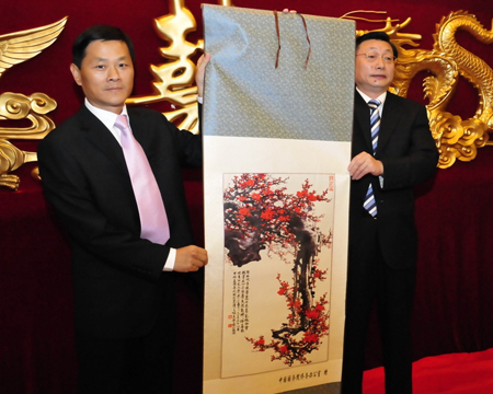 宴會中,國僑辦副主任馬儒沛向華人協會贈送了字畫。