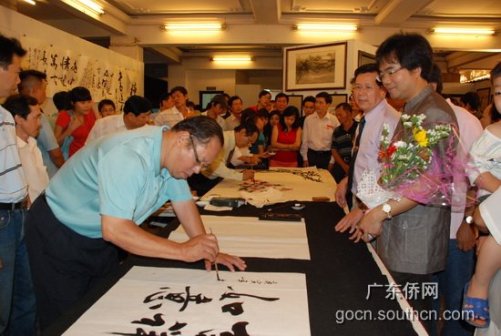 胡志明市華人書法協會會長陳川先生在第5郡文化中心專門安排書法俱樂部成員與廣東禪武書法交流團現場揮毫,互贈作品,越中書畫家們在一筆一畫中展現越中友誼萬古長青。(小琴)