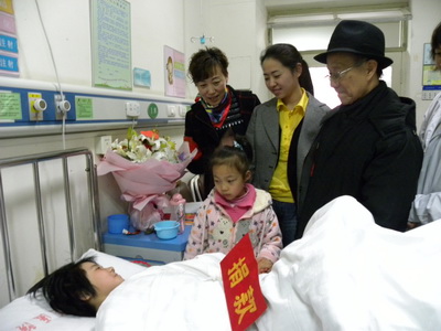 在病房里,槐蔭區(qū)僑聯(lián)主席孫嫣玲仔細(xì)詢問了小彩云的治療康復(fù)情況,并鼓勵(lì)小彩云積極配合醫(yī)生治療,爭(zhēng)取早日康復(fù)。孫嫣玲6歲的女兒還主動(dòng)拿出自己的1000元壓歲錢送給小彩云,祝愿小彩云快點(diǎn)好起來。