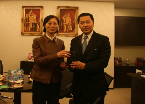 謝吉人對王琳的到訪表示歡迎,感謝山東僑辦對正大集團的支持,表示下一步要積極推動正大集團與山東的戰略合作。