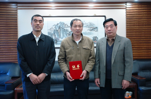 天津市海協秘書長楊進、僑政處楊毅代表天津市僑辦接受捐款,并為馬力先生頒發了榮譽證書,對其善舉表示感謝。