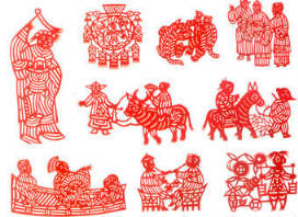 靜樂剪紙樸實(shí)渾厚,粗獷中見靈秀,清麗中見匠心。作者們憑著對生活的熱愛,對剪制對象的熟悉,運(yùn)用□熟的技巧,大膽的夸張,簡練的處理,剪出了家鄉(xiāng)的花草蟲魚、豬狗牛羊、日常勞作、節(jié)日喜慶、戲劇神話……這些作品,以似與不似的藝術(shù)效果,給人以獨(dú)特的美的享受。