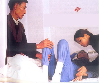 大姐李雪梅蹲在病床邊用雙手輕輕揉搓著弟弟皮包骨頭的小腿,感到那里一片冰涼。