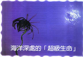 美國《全國地理》雜志報道了美國地質學家的一個驚人發現。他們乘坐「阿爾文」號深潛器在東太平洋加拉帕戈斯海底裂谷中,第一次發現了充滿生命的溫泉口。這些奇怪的熱泉噴發在幾千米深的海底,就像一個個煙囪一樣,向外噴吐著一股股的熱液,熱液的溫度竟高達350℃。更奇怪的是,在溫泉口附近竟浮游著各種各樣前所未見的奇異生物--大得出奇的紅蛤和海蟹、血紅色的管狀蠕蟲、大量的牡蠣和貽貝,還有一些類似蒲公英的生物,其放射狀的細絲附著在海底巖石上。可熱泉區以外的深海卻像沙漠一般荒蕪,偶爾可見幾只紅色的八角珊瑚、幾個小海星及海葵,點綴在黝黑的海底玄武巖上。