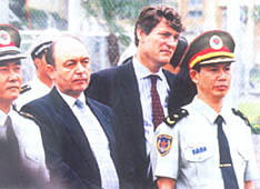 賀賢書陪同江澤民主席檢閱進駐澳門的部隊