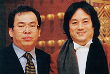 | 錢程(左)和國際著名指揮家湯沐海(右)在一起。 |