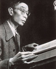 | 1961年傅雷在自己設計的字典架上查閱資料。 |
