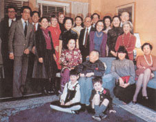 | 四世同堂共慶貝祖詒(前排老者)90壽誕,二排左一為貝聿銘長子貝定中,二排右四為貝聿銘。 |