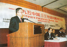| 國際金融業人士聚集北京,出席中國保險市場問題研討會,泰國著名華人實業家林明達先生在開幕式上致詞。 |
