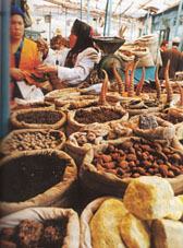 | 新疆盛產多種獨特的中藥材料,烏魯木齊市農貿市場大量出售各種藥材。 |
