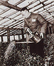 | 1959年2月6日,最高法院特赦首批戰犯溥儀(偽滿國皇帝)。圖為當年他在戰犯管理部門中勞動。 |