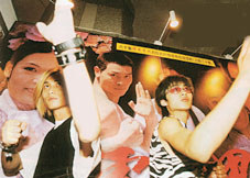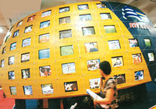 | 在內資外資雙重推動下,中國傳媒市場出現前所未有的躁動。圖為年青人在北京電視周巨幅廣告畫面前模擬武打名星動作。