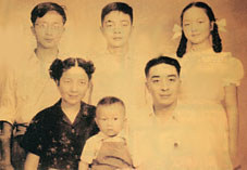 | 陳歌辛與家人的全家福(前排左起:金嬌麗、陳東、陳歌辛,后排左起:陳鋼、陳鏗、陳小麗) |