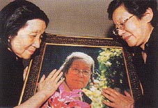 | 胡絜青的大女兒舒濟(右)與小女兒舒雨(左)在家中深情地追思慈母的音容。 |