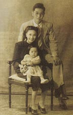| 1944年10月23日戴望舒生日與夫人楊靜及女兒戴詠絮合影。 |