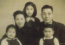 | 1949年1月戴望舒與夫人楊靜及子女在離港前合影(前排為長女戴詠素、前左為次女戴詠絮、前右為幼女戴詠樹) |